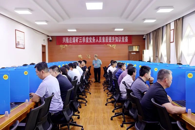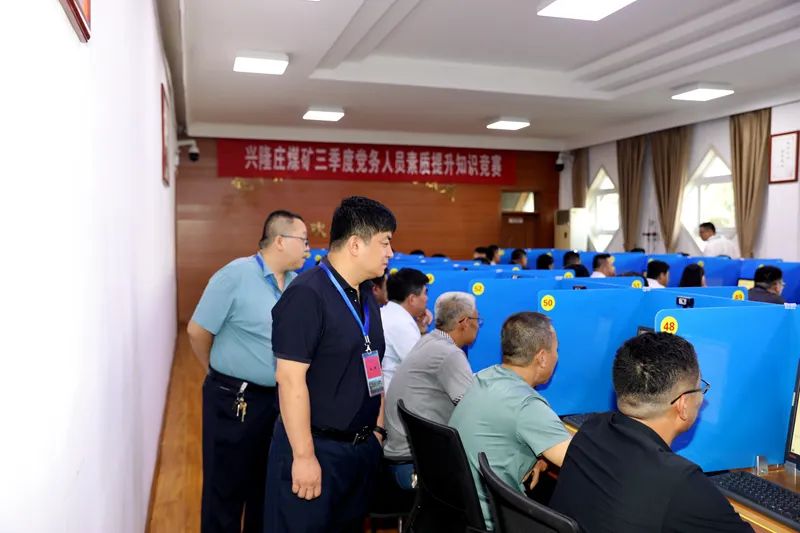 矿副总经济师吴朋到竞赛现场巡视。来自全矿各单位的党(总)支部书记、支部委员、支部文书及政工科室人员共计110余人参加竞赛。