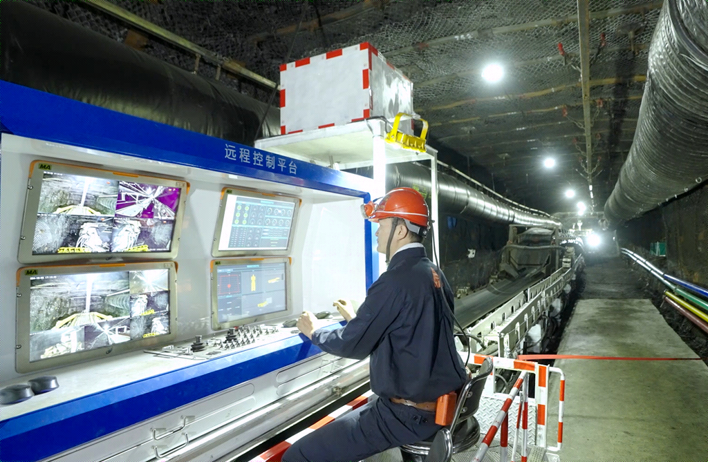 在该矿调度室智慧大厅,一块巨型电子屏实时跳动着井下各作业面的核心数据,涵盖14个专业模块、覆盖512路应用场景的AI智能预警系统,如同不知疲倦的“安全哨兵”,对各类安全风险毫秒级识别、秒级响应。采煤工作面推行“记忆截割+学习示范刀”技术,采煤机依照预设程序精准自动截割,既降低了人员作业风险,又提升了生产效能;掘进工作面“遥控截割+双臂支护”技术常态化运行,“长压短抽”除尘系统实测除尘率达95%,彻底改善了职工作业环境。